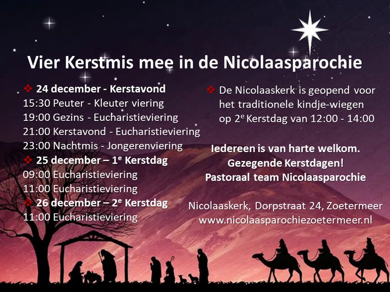 Elke zondagochtend na de viering in de Nicolaaskerk is er de mogelijkheid om koffie of thee te drinken in de Kapelaan. Dus zowel na de viering van 11:00 als na de viering van 9:00. We hopen daar velen te mogen ontmoeten, iedereen is van harte welkom.